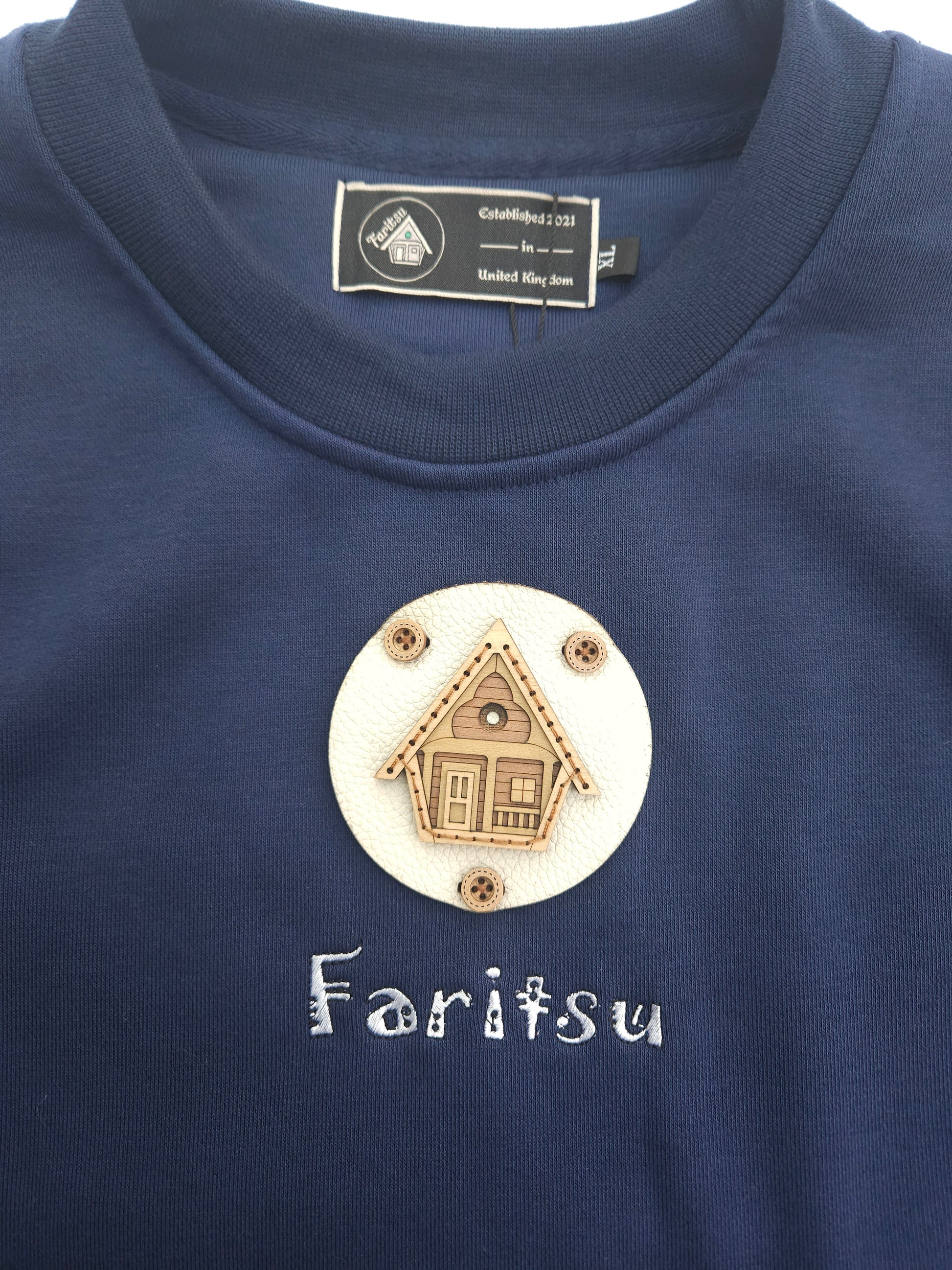 Experience redefined comfort and craftsmanship with The Birdhouse Retreat, a navy blue sweatshirt by Faritsu that blends high-end cotton with intricate laser-crafted wood art. This serene fusion of materials and technology creates a timeless design, perfect for those who value understated elegance and contemporary detail.